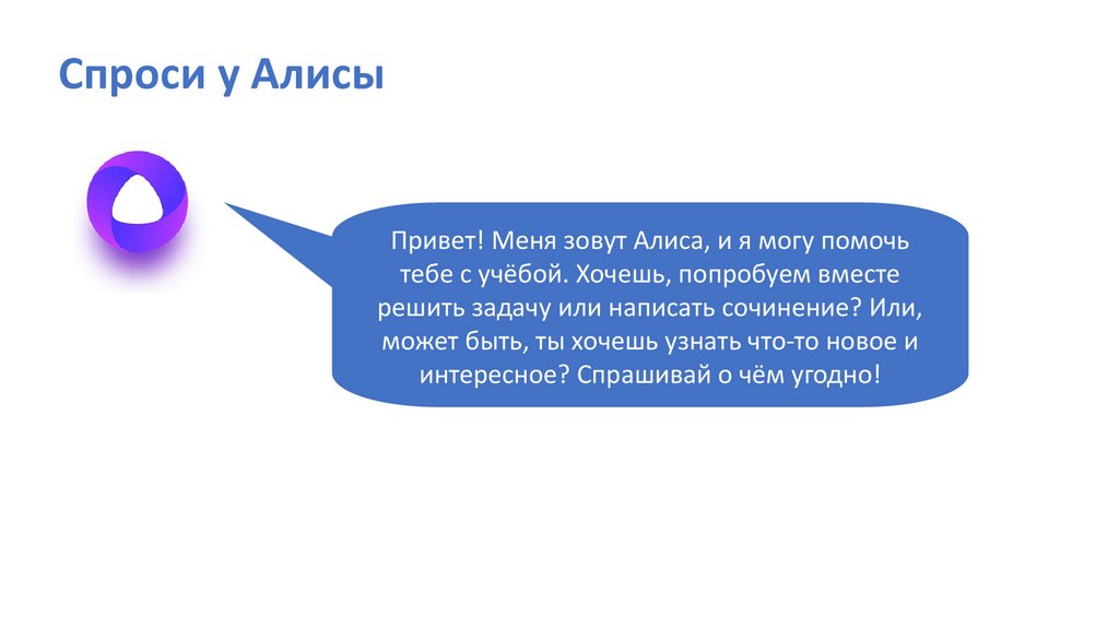 Спроси у АлисыПривет! Меня зовут Алиса, и я могу помочь