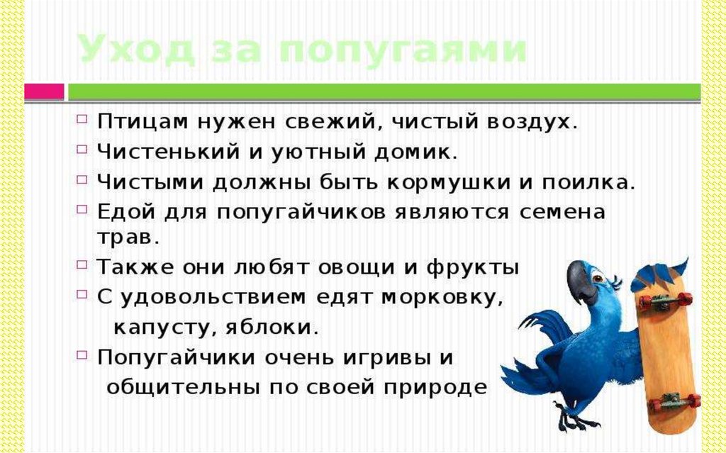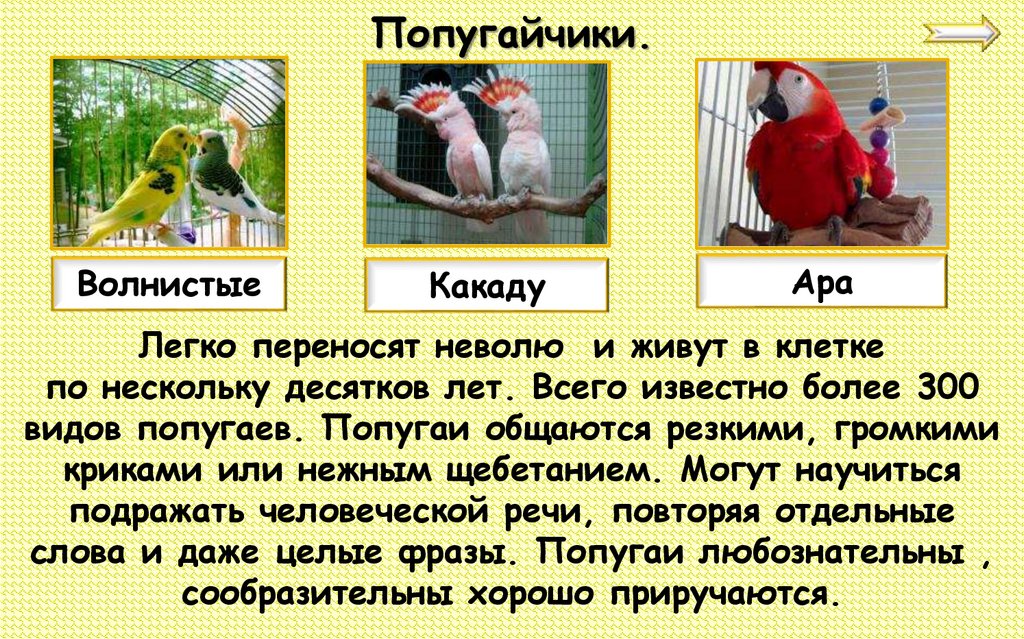 слова и даже целые фразы. Попугаи любознательны ,