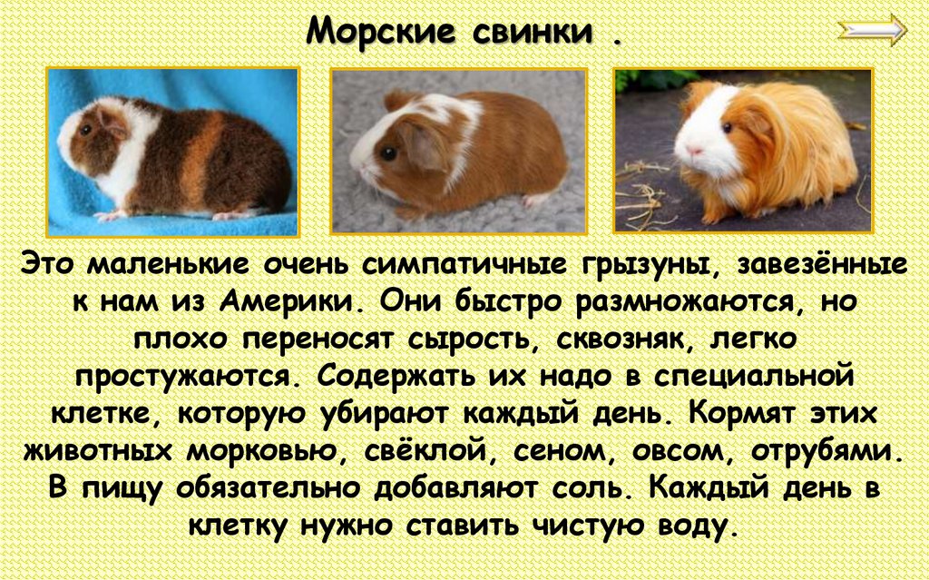 Морские свинки .Это маленькие очень симпатичные грызуны, завезённые