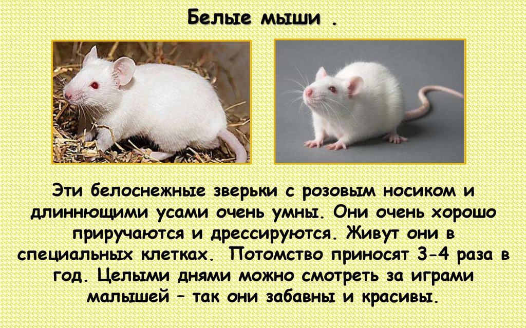 Белые мыши .Эти белоснежные зверьки с розовым носиком и