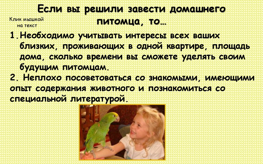 Если вы решили завести домашнегоКлик мышкой