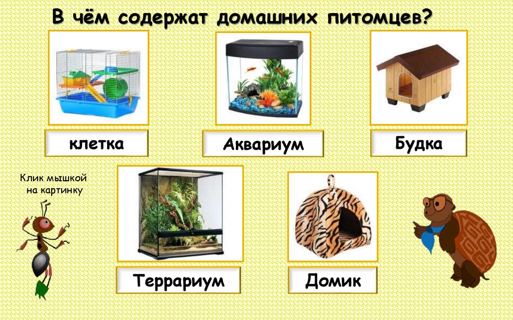 В чём содержат домашних питомцев?клетка