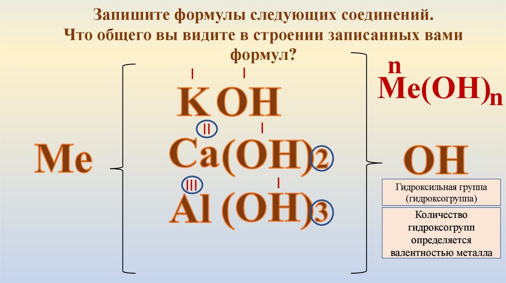 3. Основания- сложные вещества, состоящие из атомов металлов и гидроксильных групп
