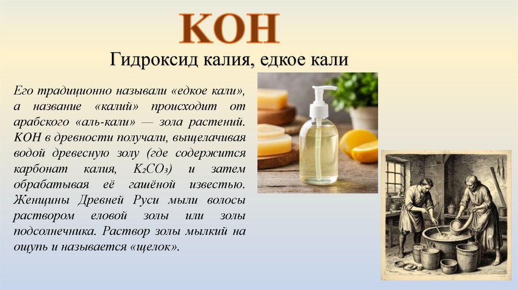 Гидроксид калия, едкое калиЕго традиционно называли «едкое кали»,