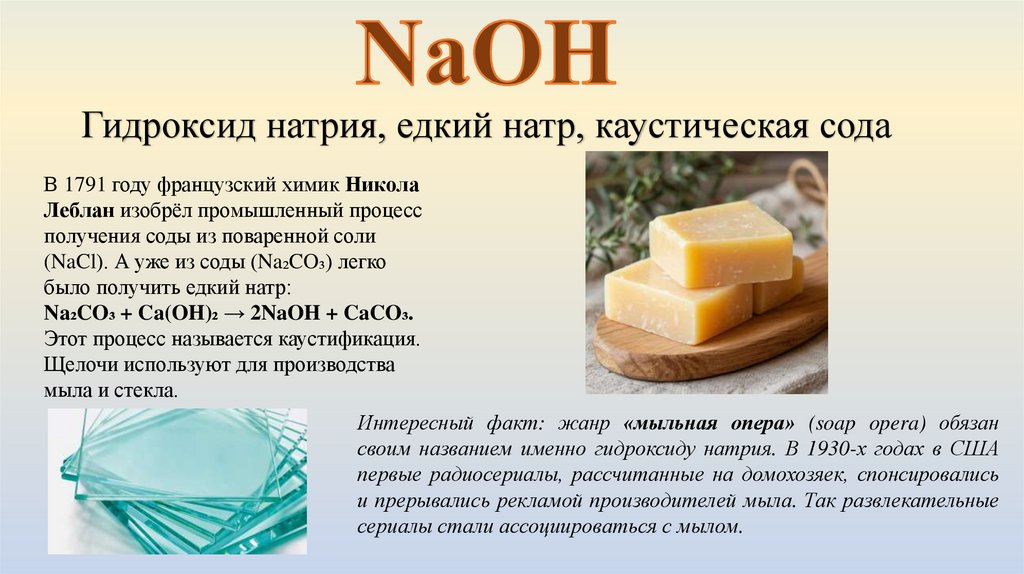 своим названием именно гидроксиду натрия. В 1930-х годах в США