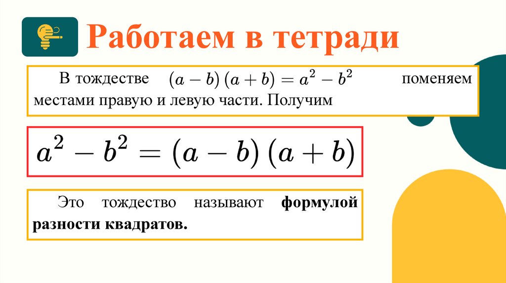 РАЗЛОЖЕНИЕРАЗНОСТИ КВАДРАТОВ