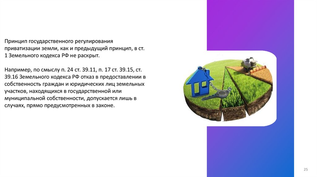 Принцип государственного регулированияприватизации земли, как и предыдущий принцип, в ст.