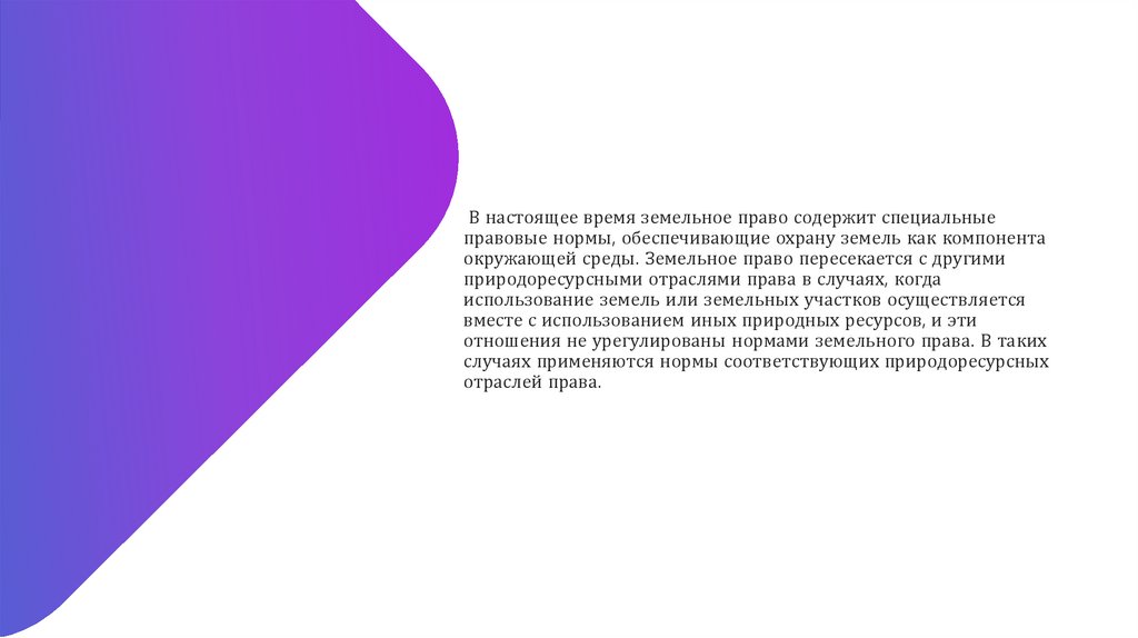В настоящее время земельное право содержит специальныеправовые нормы, обеспечивающие охрану земель как компонента