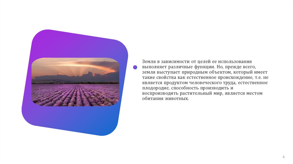 Земля в зависимости от целей ее использованиявыполняет различные функции. Но, прежде всего,