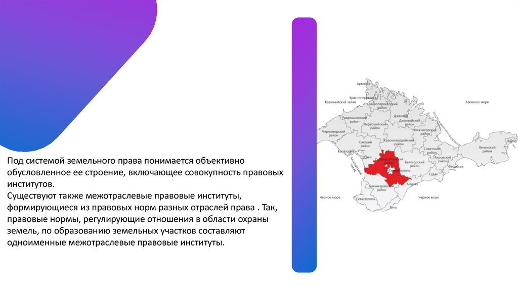 Под системой земельного права понимается объективнообусловленное ее строение, включающее совокупность правовых