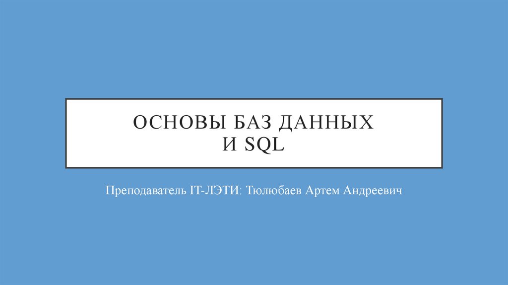 ОСНОВЫ БАЗ ДАННЫХИ SQL