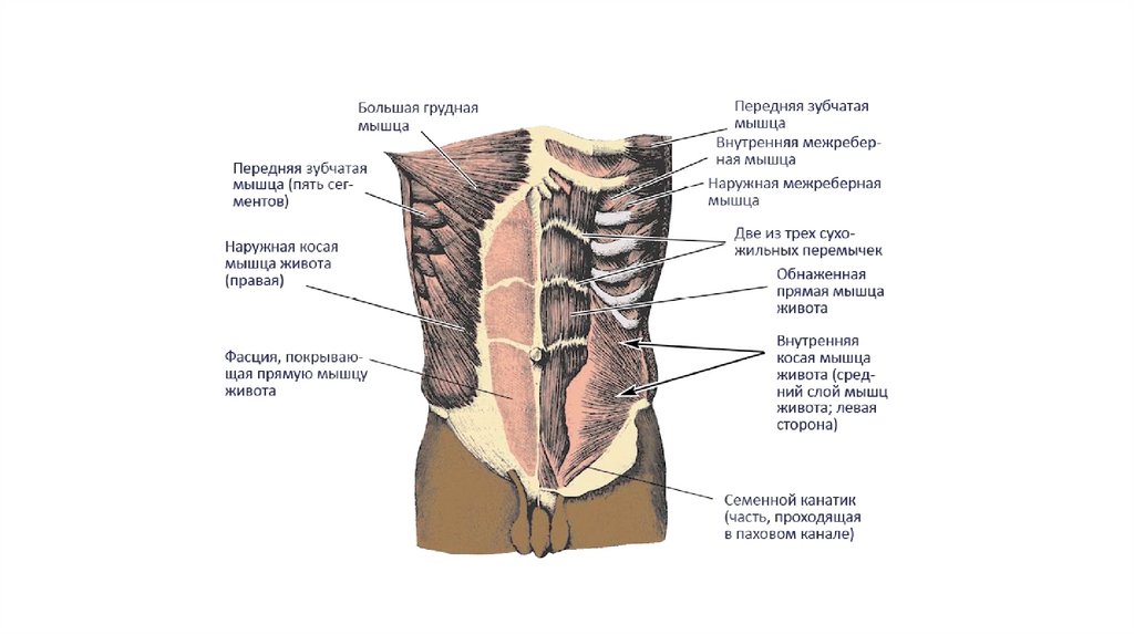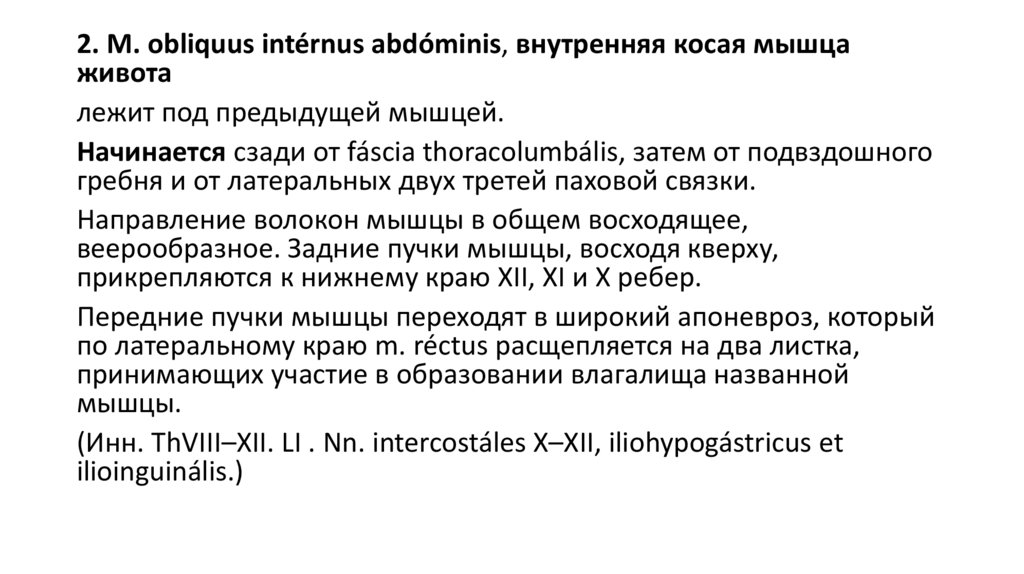 oblíquus intérnus abdóminis, а на противоположной стороне — m. oblíquus extérnus