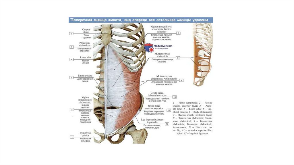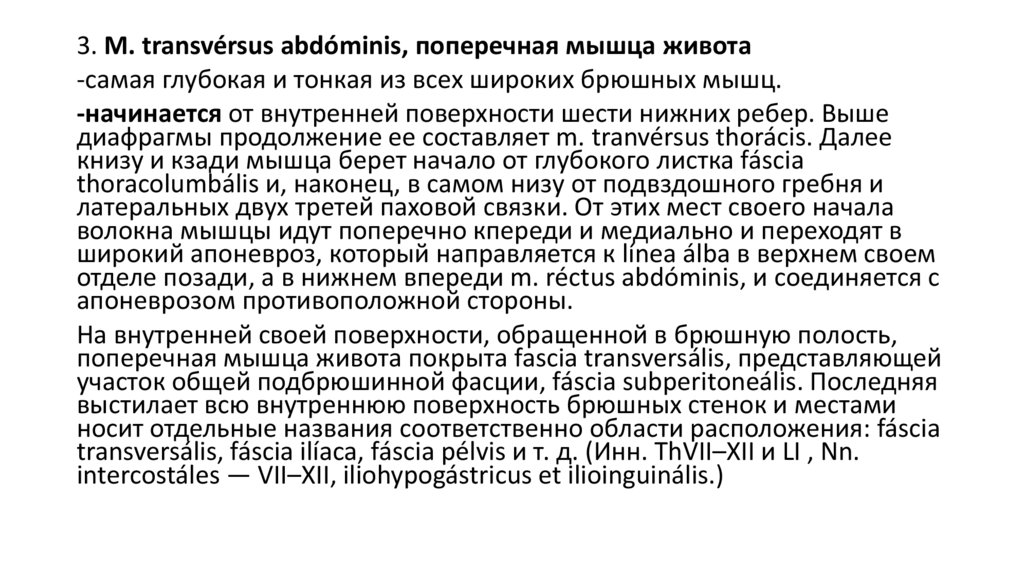 продолжение поперечной мышцы живота. (Инн. ThIII–VI. Nn. intercostáles.)