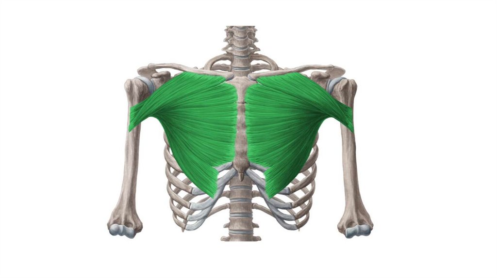 1. М. pectorális májor, большая грудная мышца-начинается от медиальной половины ключицы (pars claviculáris), от передней