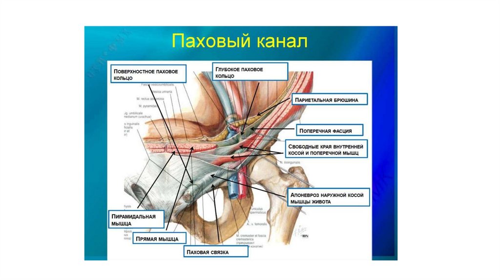 покрывающей m. obliquus extérnus abdóminis. Эта же фасция в виде тонкой пленки