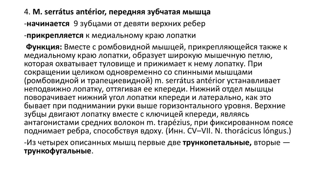 -Из четырех описанных мышц первые две трункопетальные, вторые —
