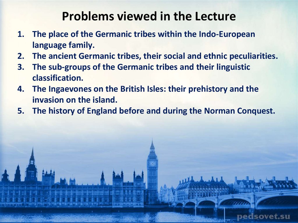 Problems viewed in the Lecture1. The place of the Germanic tribes within the Indo-European
