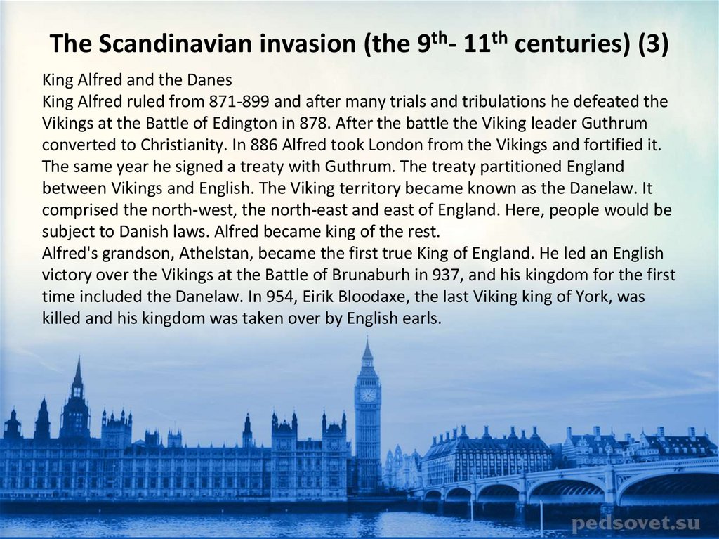 The Scandinavian invasion (the 9th- 11th centuries) (3)King Alfred and the Danes