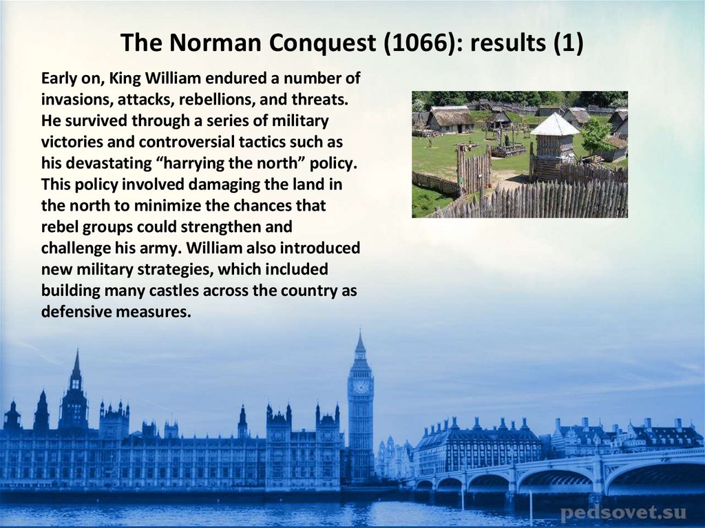 The Norman Conquest (1066): results (1)Early on, King William endured a number of