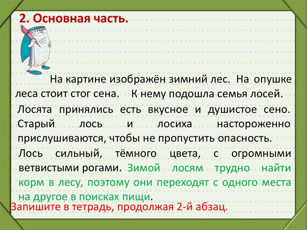 Запишите в тетрадь, продолжая 2-й абзац.
