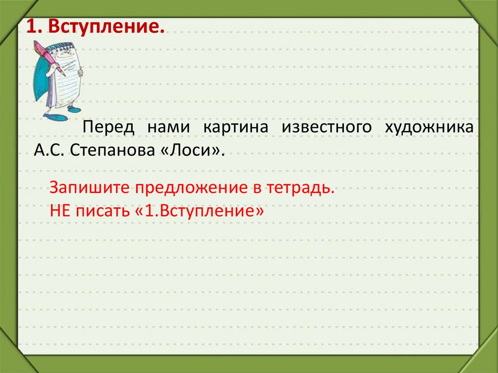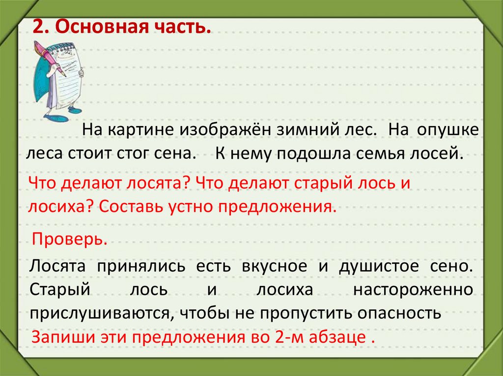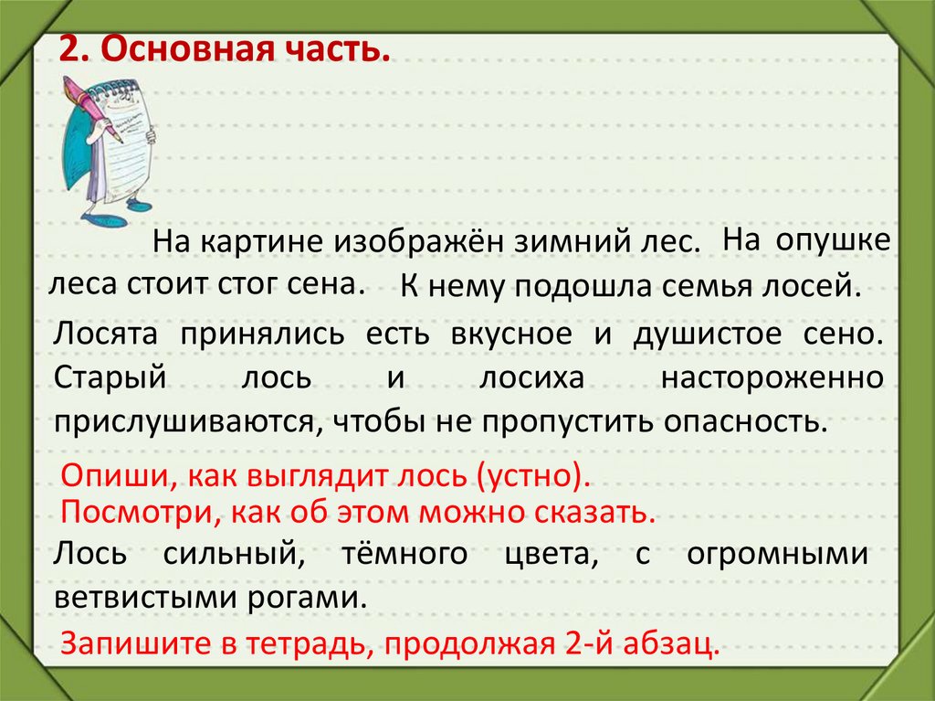Урок русского языка во 2 классе2. Знакомство с картиной «Лоси».