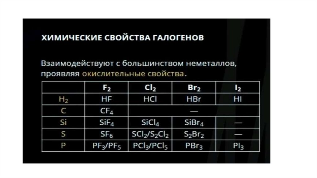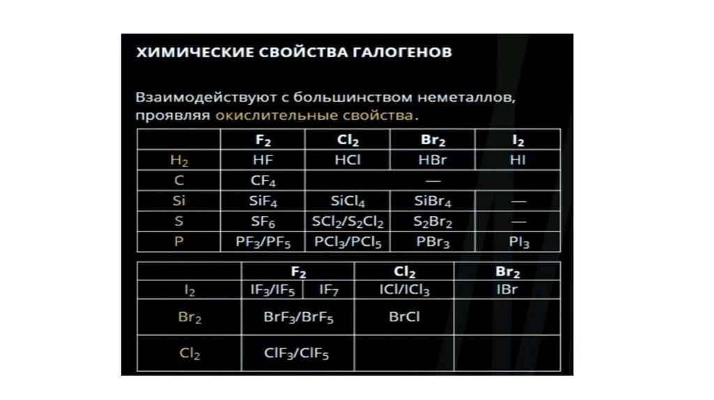 Свойства галогенов