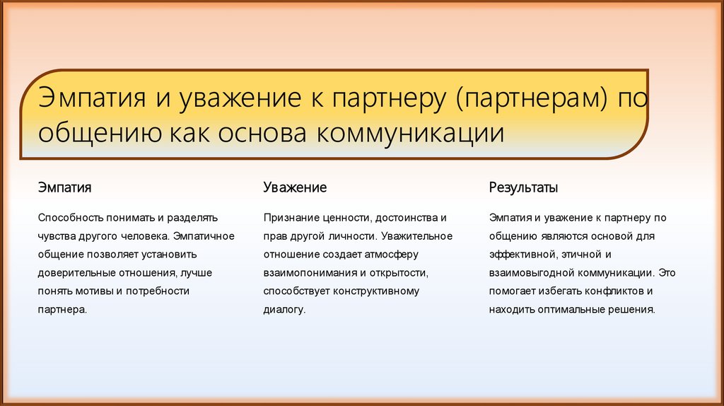 Эмпатия и уважение к партнеру (партнерам) пообщению как основа коммуникации