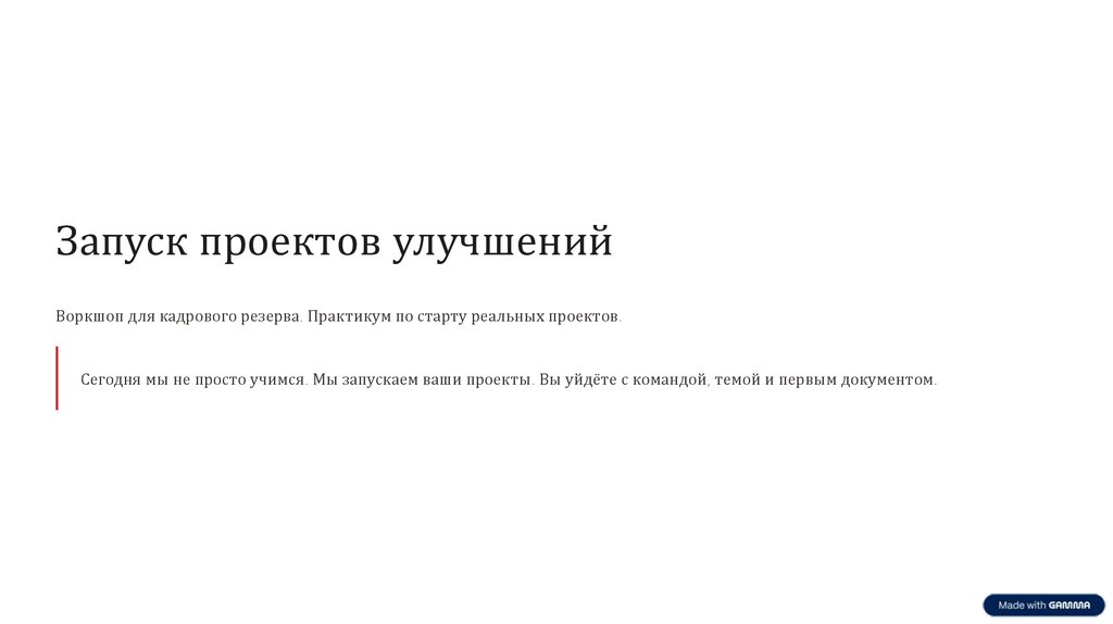 Запуск проектов улучшенийВоркшоп для кадрового резерва. Практикум по старту реальных проектов.