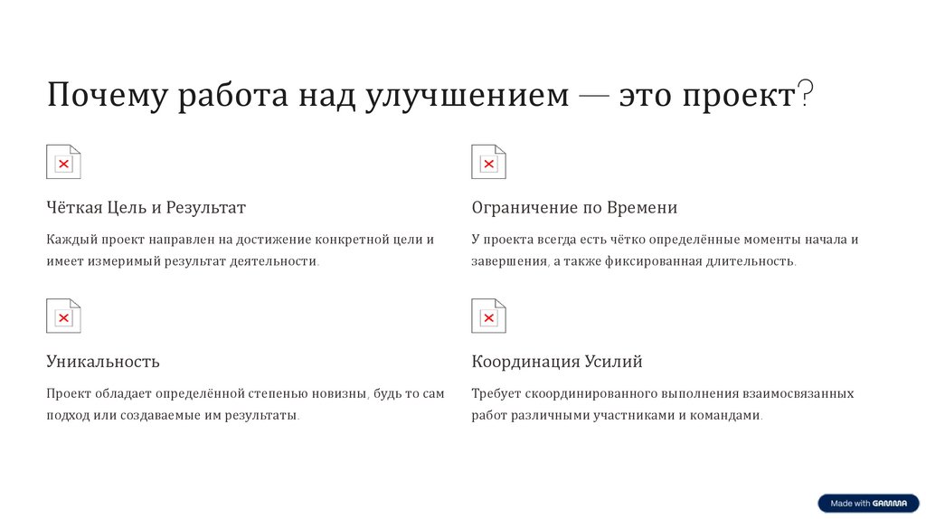 Почему работа над улучшением — это проект?Чёткая Цель и Результат