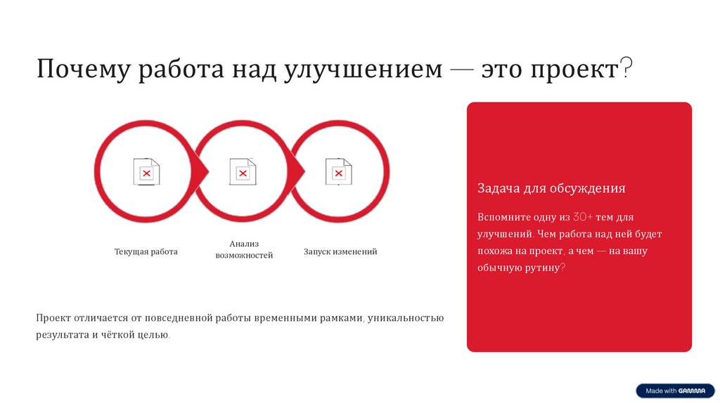 Почему работа над улучшением — это проект?Задача для обсуждения