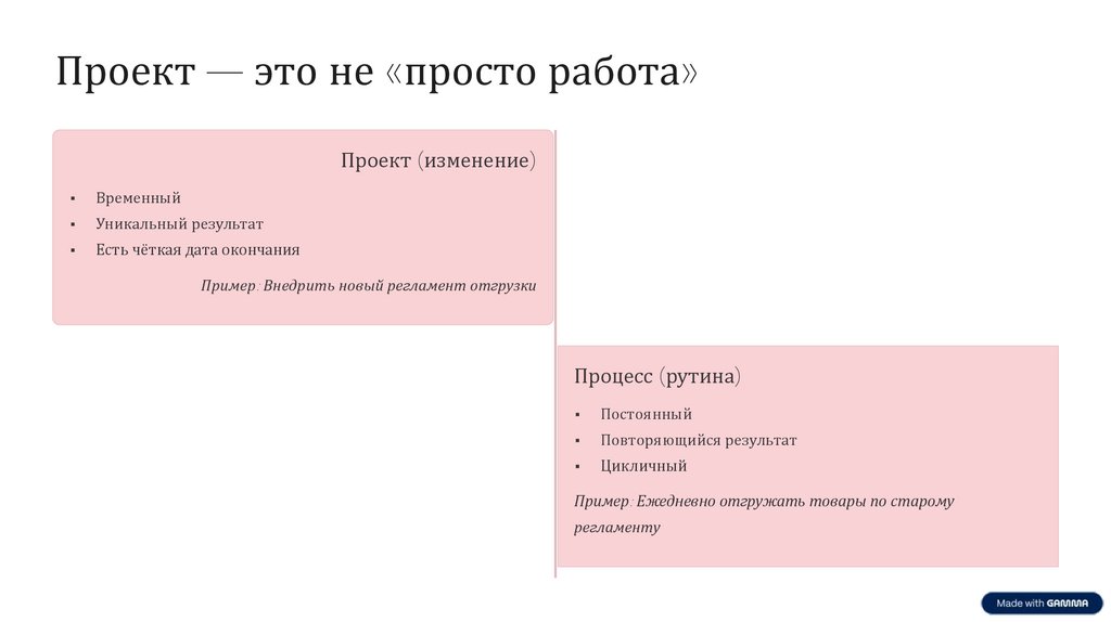 Проект отличается от повседневной работы временными рамками, уникальностью