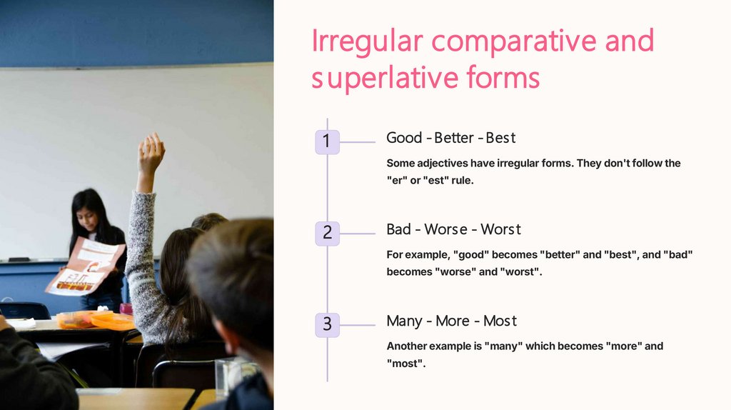 Some adjectives have irregular forms. They don't follow the