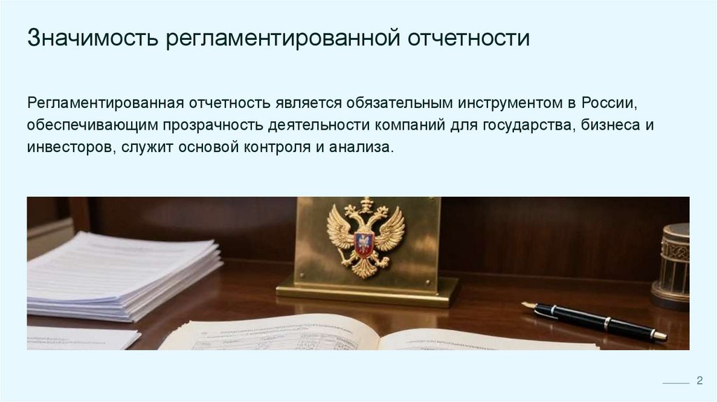 Значимость регламентированной отчетностиРегламентированная отчетность является обязательным инструментом в России,