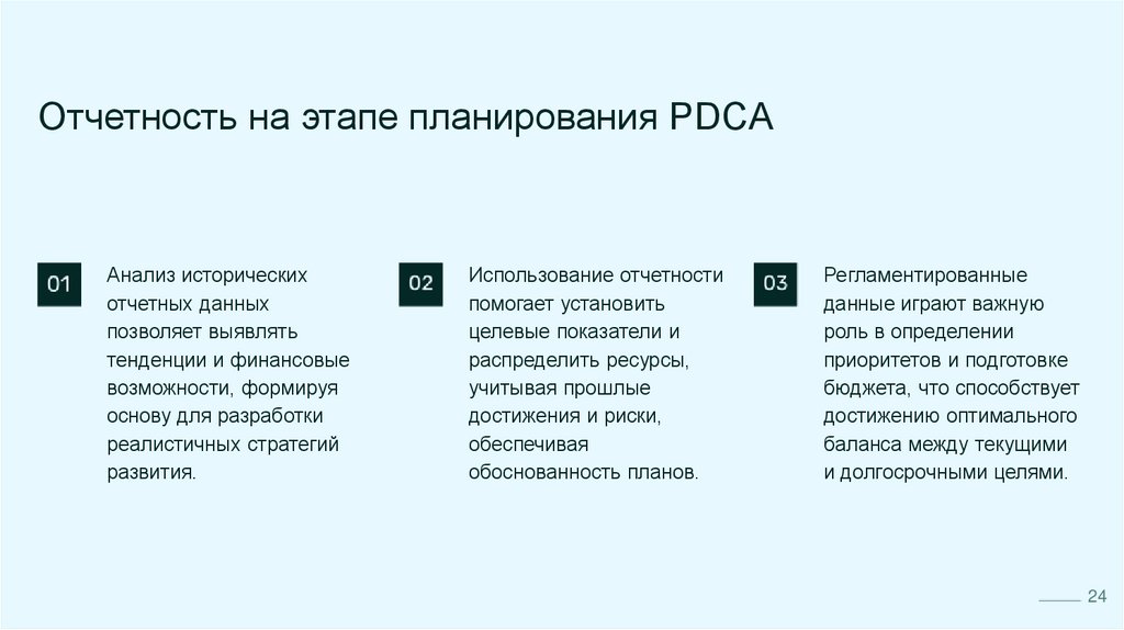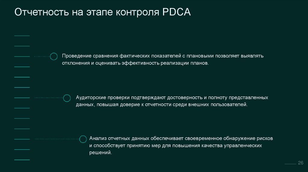 Отчетность на этапе контроля PDCAПроведение сравнения фактических показателей с плановыми позволяет выявлять