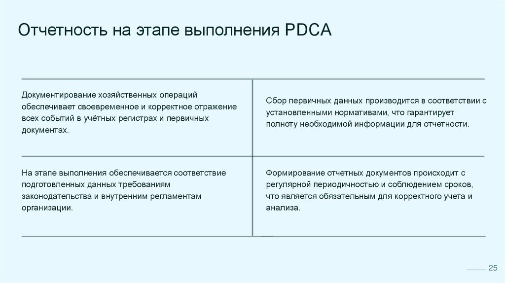 Отчетность на этапе выполнения PDCAДокументирование хозяйственных операций
