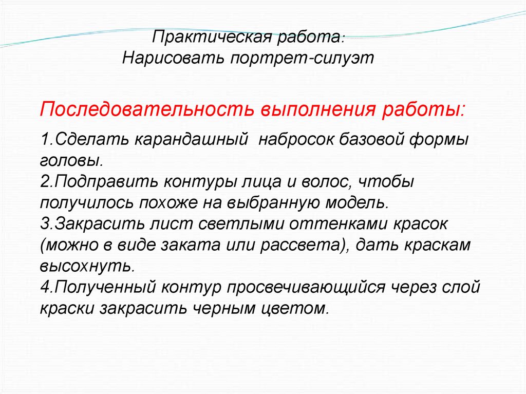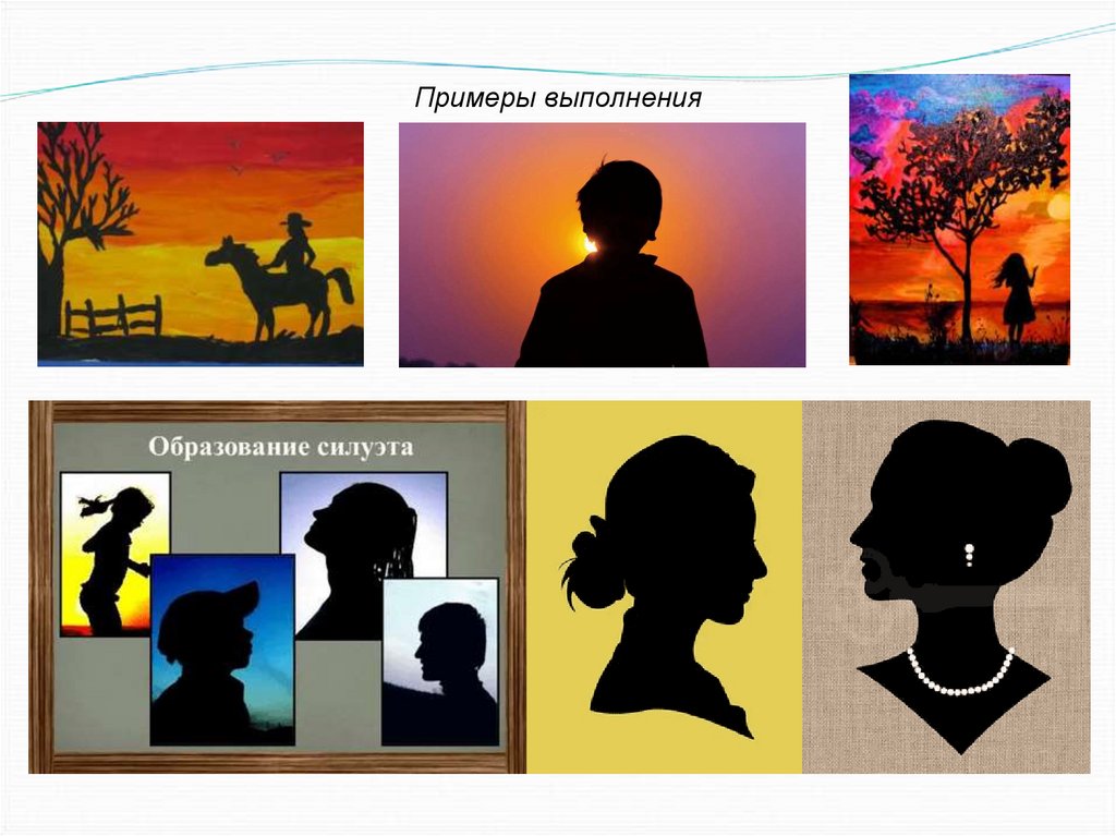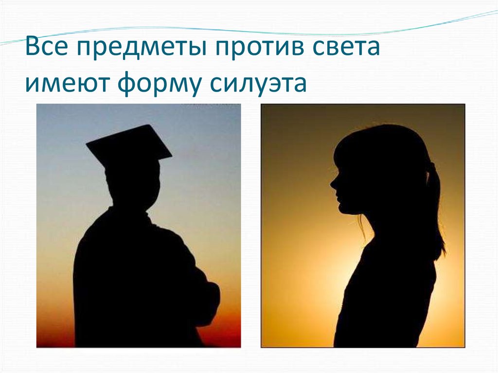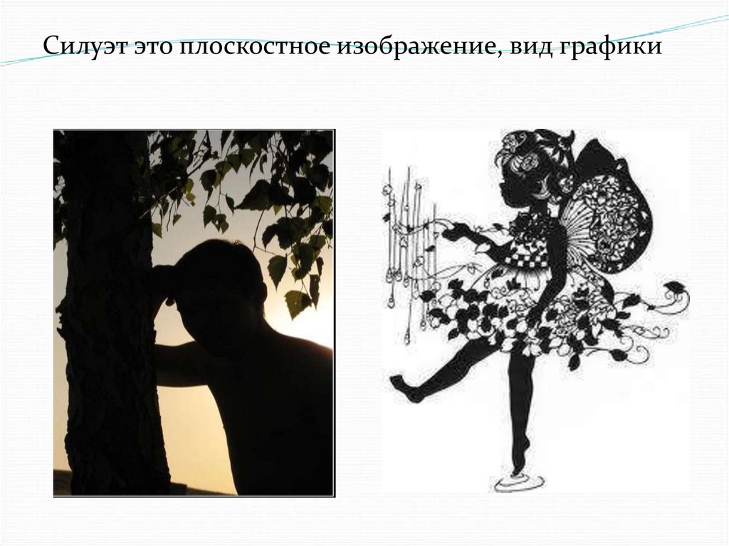 Силуэт - изображение предмета, подражающее тени,производимой им на плоской поверхности при солнечном или