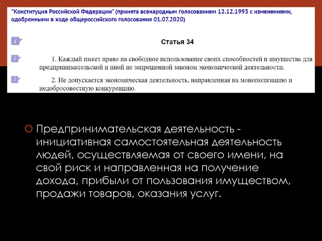 Предпринимательская деятельность инициативная самостоятельная деятельностьлюдей, осуществляемая от своего имени, на