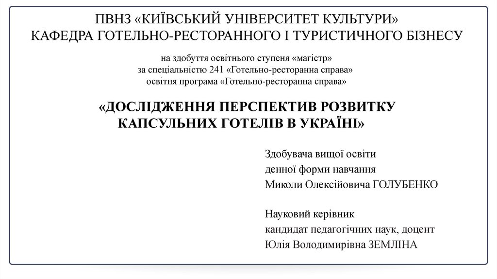 ПВНЗ «КИЇВСЬКИЙ УНІВЕРСИТЕТ КУЛЬТУРИ»КАФЕДРА ГОТЕЛЬНО-РЕСТОРАННОГО І ТУРИСТИЧНОГО БІЗНЕСУ