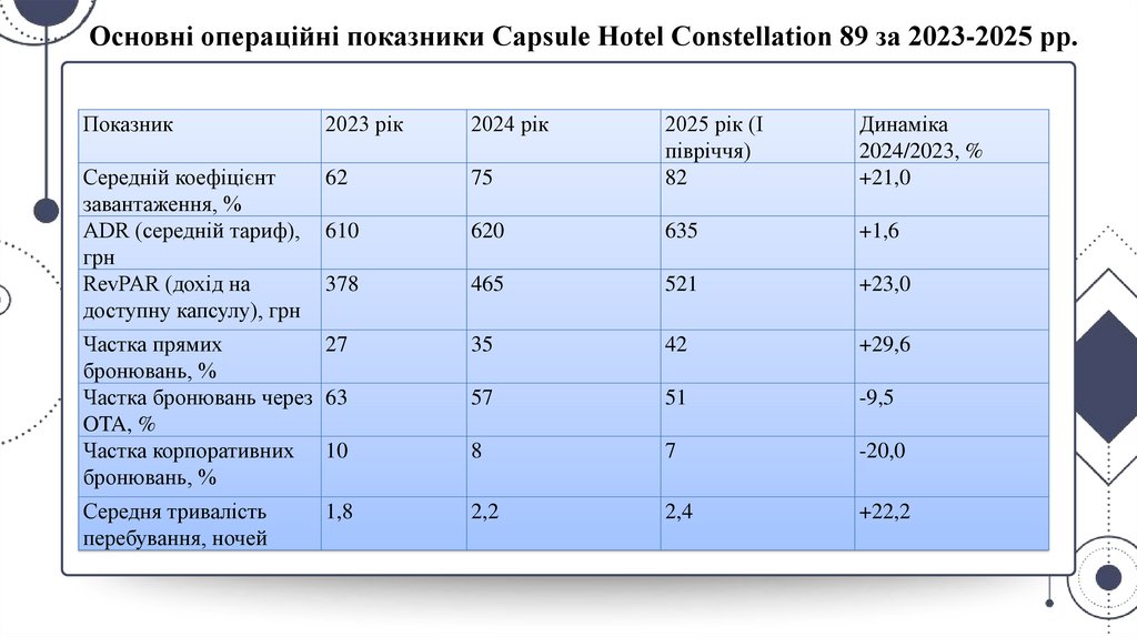 проаналізовано операційну діяльність Capsule Hotel Constellation 89 та визначено ключові