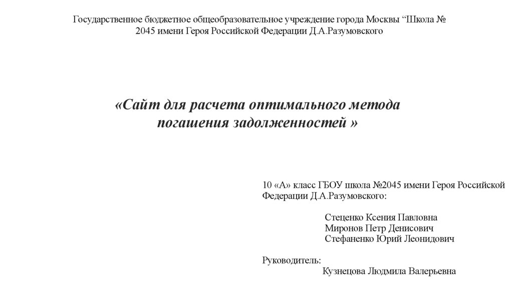 Государственное бюджетное общеобразовательное учреждение города Москвы “Школа №2045 имени Героя Российской Федерации Д.А.Разумовского