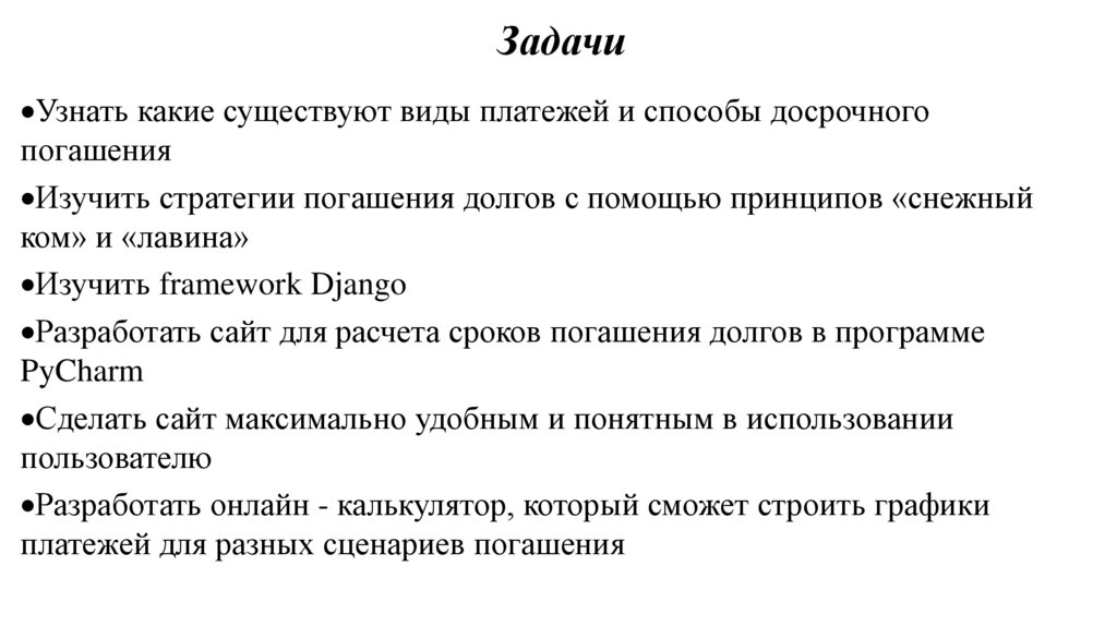ЗадачиУзнать какие существуют виды платежей и способы досрочного