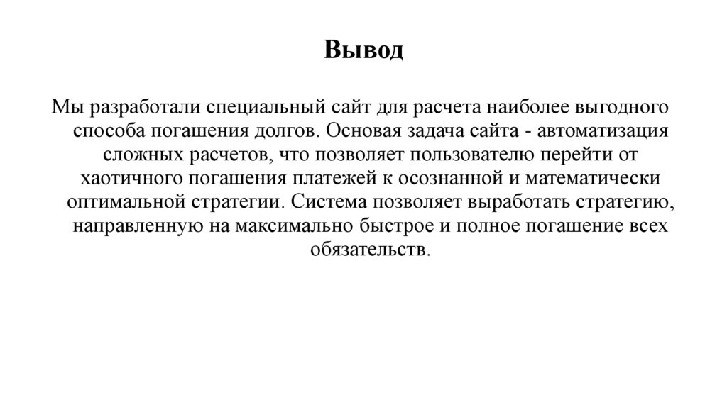 Разработать сайт для расчета сроков погашения долгов в программе