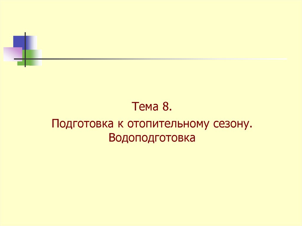 Тема 8. Подготовка к отопительному сезону. Водоподготовка