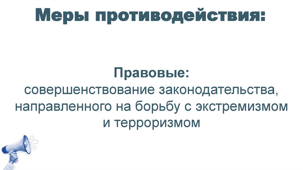 Меры противодействия:Правовые: