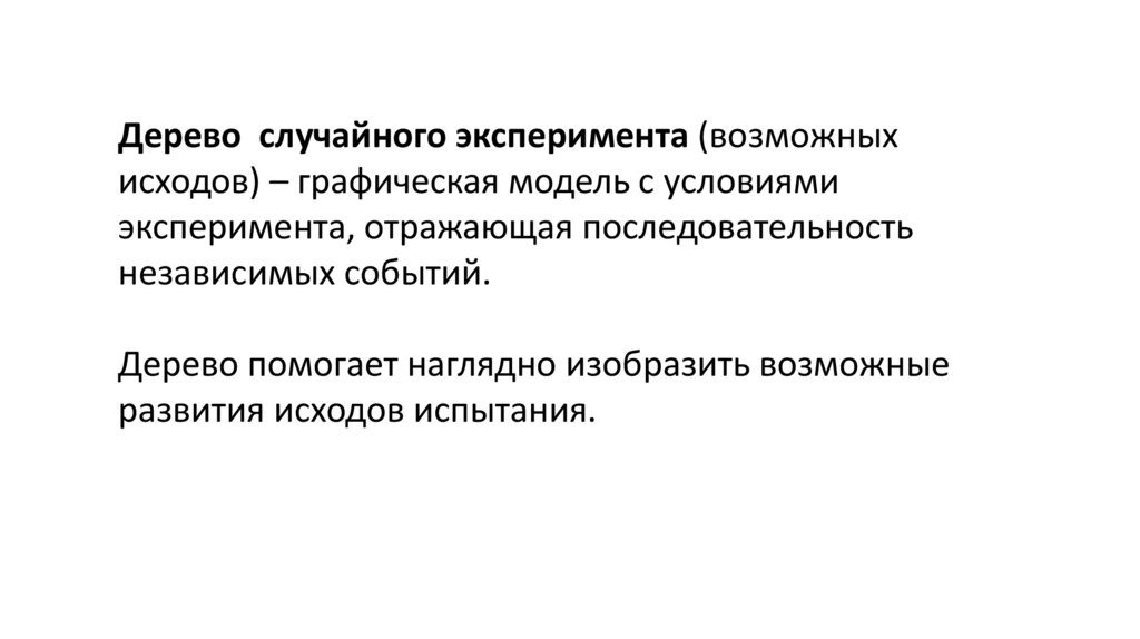 Дерево случайного эксперимента (возможныхисходов) – графическая модель с условиями