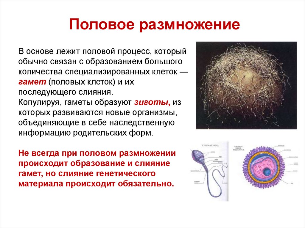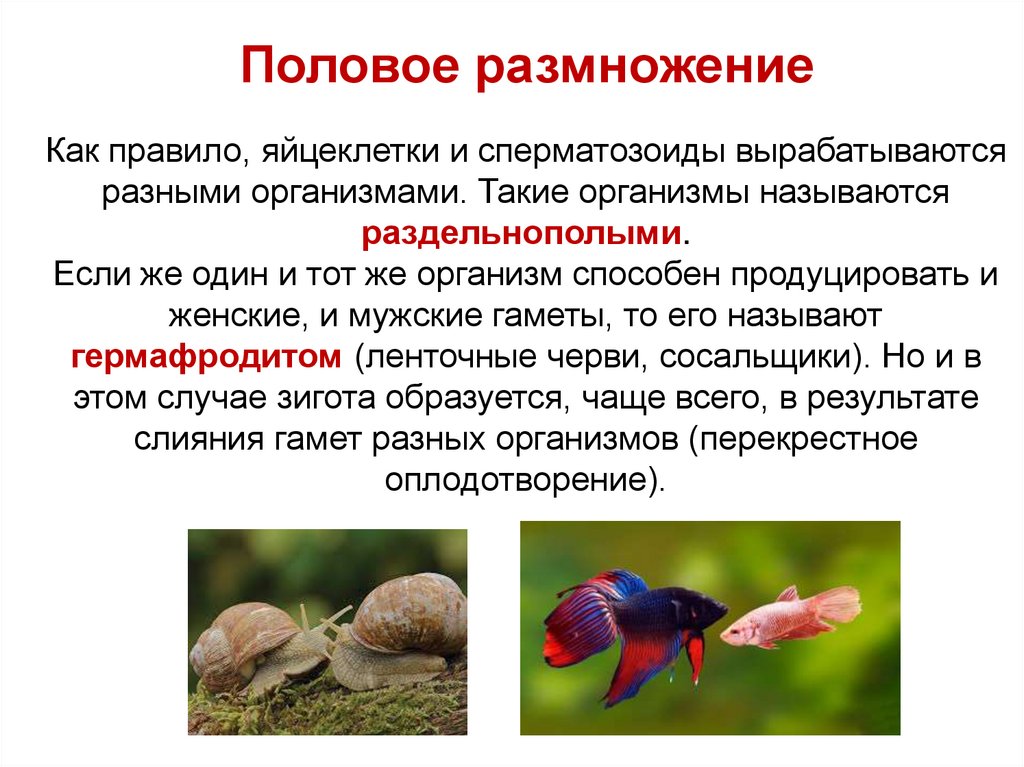 Половое размножениеКак правило, яйцеклетки и сперматозоиды вырабатываются
