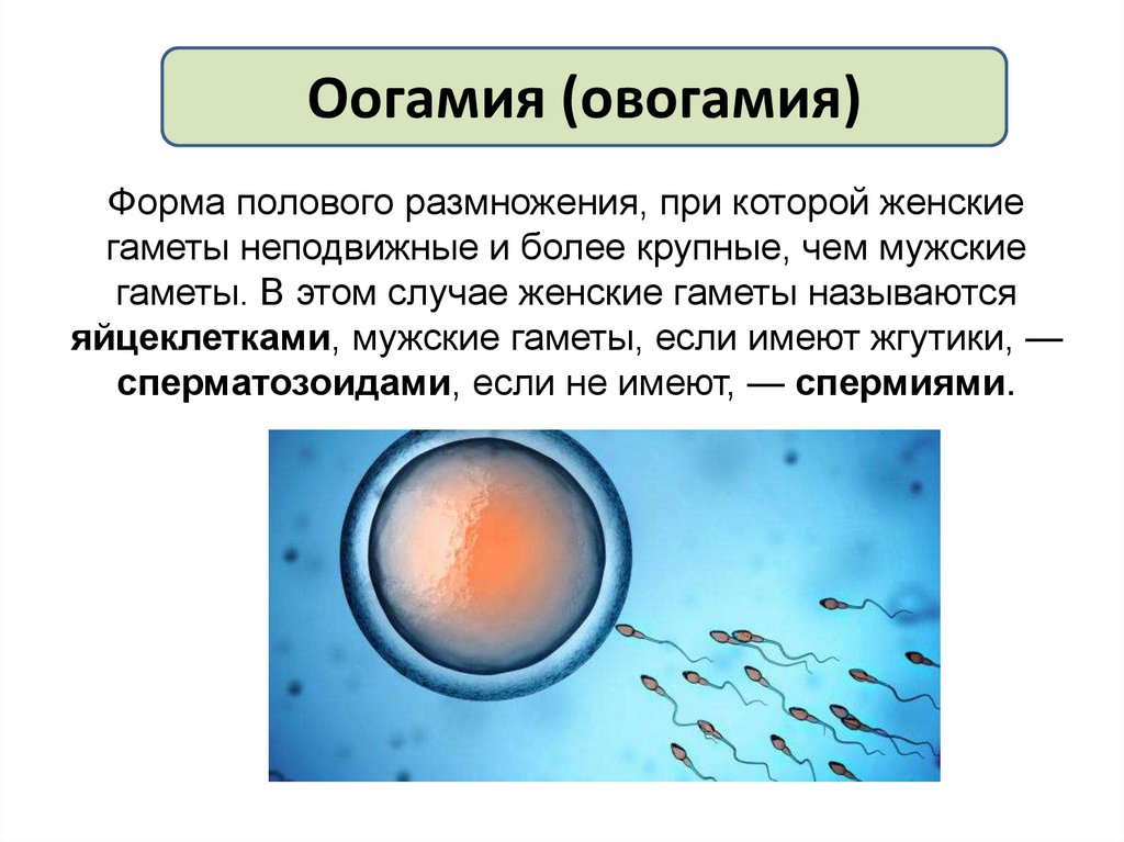 Оогамия (овогамия)Форма полового размножения, при которой женские