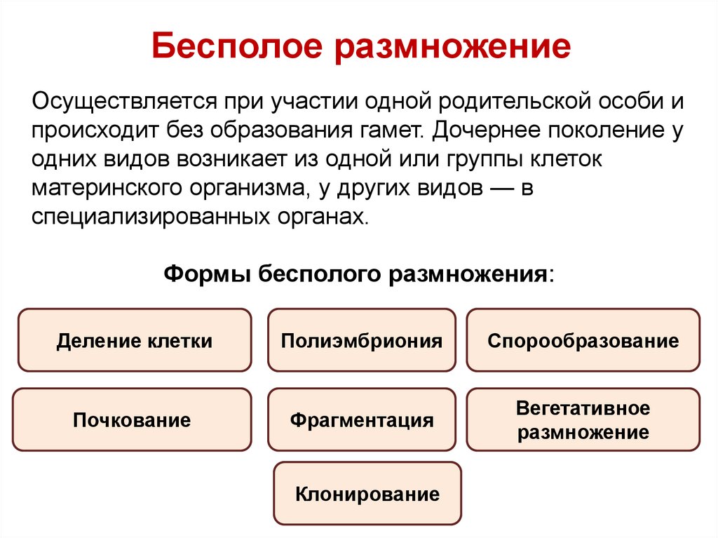Формы бесполого размножения: