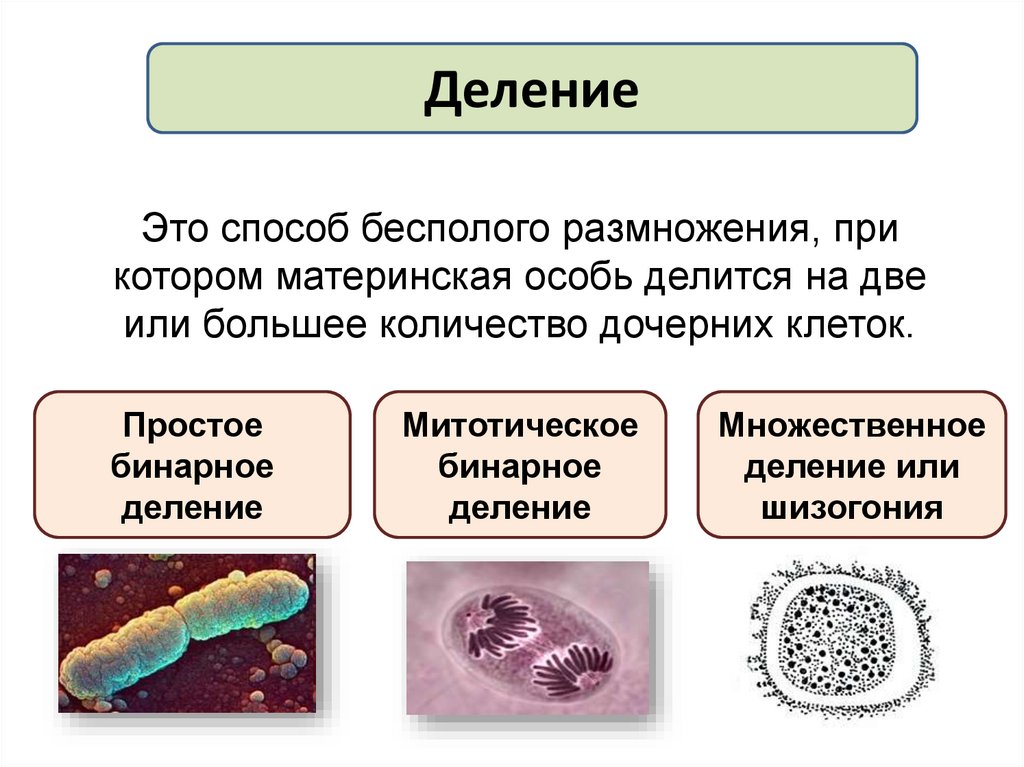 ДелениеЭто способ бесполого размножения, при