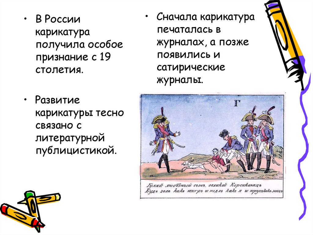 Зарождение карикатуры в Россиипроизошло в XVII в. с народных